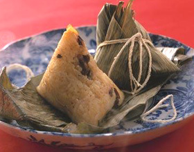 最大差別:溫水泡好棗,然后去籽剪成豆大顆粒,再與濾干的糯米混勻,至于調(diào)料方面,喜歡甜的可放些糖。 綠豆鴨蛋粽做法 糯米、綠豆各750克,花生米25克,熟咸鴨蛋黃5個(gè)。將蛋黃切碎與糯米、綠豆、花生拌勻成餡。取泡過(guò)的粽殼葉折成斗狀,填入適量餡料,包好后入鍋加冷水浸沒(méi)粽子,煮沸1小時(shí)后,改文火煮1小時(shí)即可。 皮牛肉粽做法 泡過(guò)的糯米、綠豆各1000克,牛肉、陳皮各100克,豬肉末50克,蔥末、姜末、食鹽適量。用豬油將蔥末炒黃,依次放入牛肉、陳皮、豬肉末炒半分鐘后,淋上麻油即成餡。包時(shí)先填進(jìn)拌勻的糯米、綠豆,將餡料夾在中間,再按上述方式煮熟。 百果粽子做法 糯米750克、青梅、菠蘿肉、冬瓜條各25克,西瓜子仁、核桃仁、葡萄干、紅絲各15克,白砂糖300克。先將青梅、菠蘿肉、冬瓜條各用白糖水煮,瀝干水分,然后用白糖腌漬24小時(shí),即成餡。包成五角方底粽,煮50分鐘,離火燜4分鐘即成。 咸香雞肉粽 材料:糯米600克、雞肉800克、薯仔400克、蝦米80克、蒜蓉1湯匙、生抽半湯匙、蔥、鹽、雞精、生粉若干、粽葉適量、粽繩適量。 做法: 1、將雞肉、薯仔和大蔥頭剁碎,加入鹽、蒜、雞精、生粉等調(diào)料拌勻。 2、洗凈糯米,浸水半小時(shí)。燒熱鍋,用蔥姜蒜爆香,加入糯米和生抽,炒均。 3、用粽葉2張,折疊成漏狀,放入炒香的糯米1湯匙,加入做法1中扮勻的餡料,再加入1湯匙的糯米在上面。 4、將粽繩把粽子扎好,放入高壓煲中煮30分鐘,即可趁熱食。如果是普通煲須煮2小時(shí)左右。 裹蒸粽做法 材料: 1、糯米500克、干香菇1朵、蓮子4粒、蝦米10克、綠豆仁50克、栗子2粒、干荷葉1張、干竹葉6片、干堿草2條。 2、咸蛋黃1粒、胡椒粉少許、芋頭30克、排骨、肥肉約100克;五香粉、蔥油、味精鹽少許。 做法: 1、將用料1中的材料泡水至發(fā)起為止,其中尖糯米至少泡2個(gè)半小時(shí)以上,然后用胡椒粉、蔥油、味精、鹽來(lái)腌味。芋頭切塊炸過(guò),備用。 2、將肥肉切塊用五香粉腌味約30分鐘。排骨切塊用黑醋、醬油、鹽、味精、面粉腌過(guò)備用。 3、將荷葉對(duì)撕,粗面朝下,鋪上3片竹葉,放一半的糯米。然后放入香菇、蓮子、蝦米、栗子、咸蛋黃、肥肉、排骨、芋頭、綠豆仁。再放上另一半糯米,將另外3片竹葉蓋上。 4、將荷葉左右兩側(cè)對(duì)摺抓緊,再前后對(duì)摺抓緊包成四角形,用堿草包緊打結(jié)即可。 5、用水煮粽子四小時(shí)即可上桌。